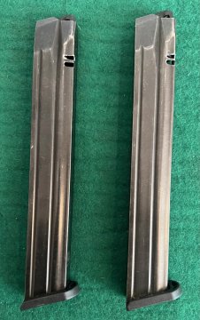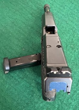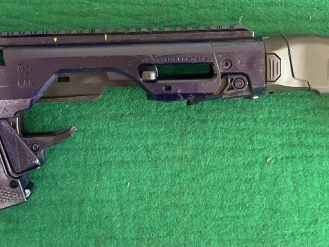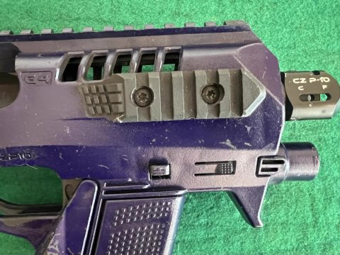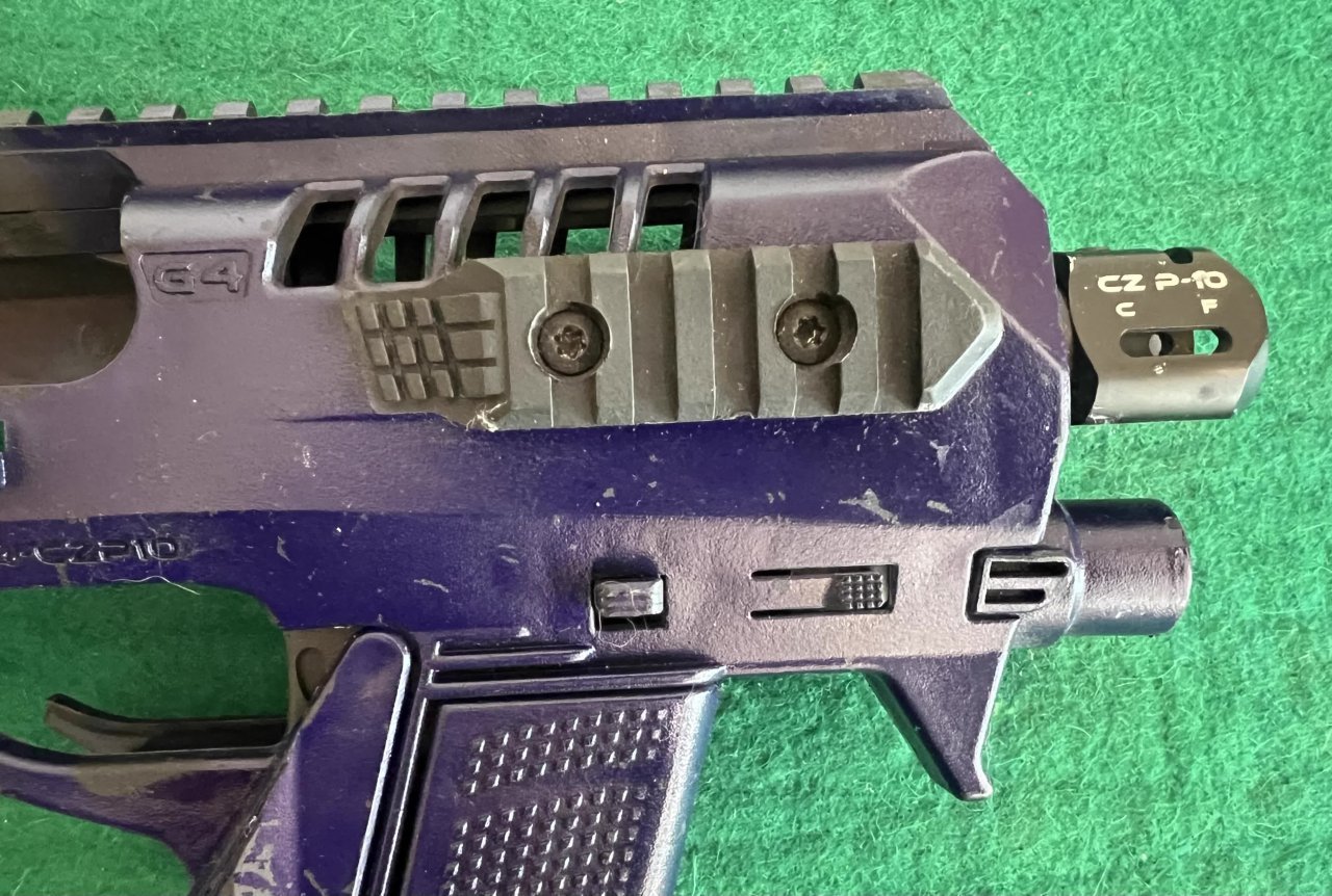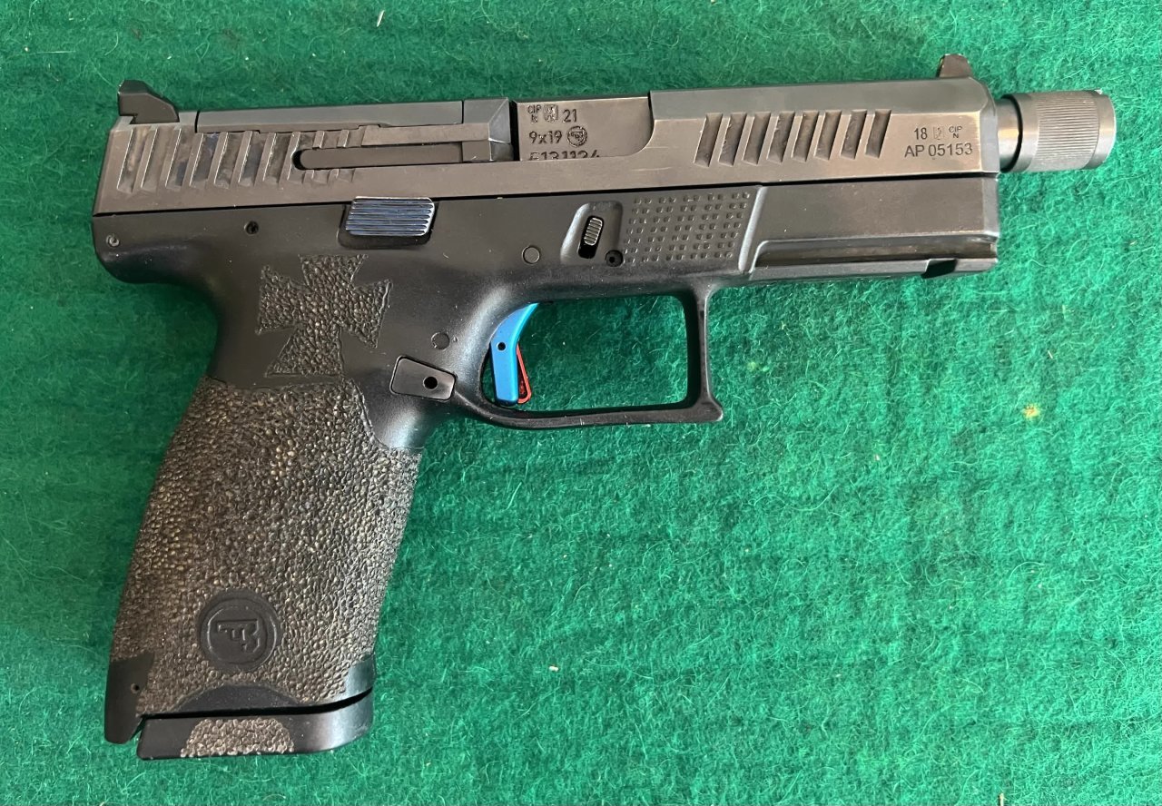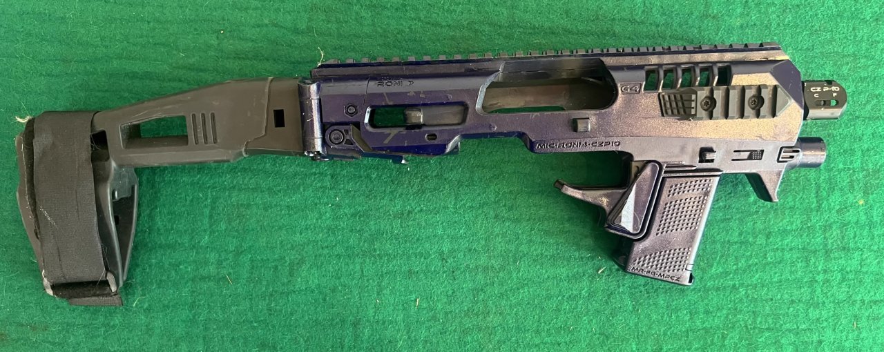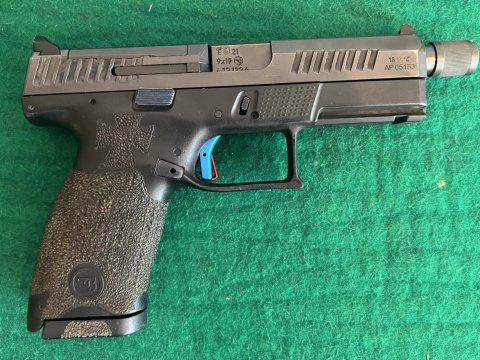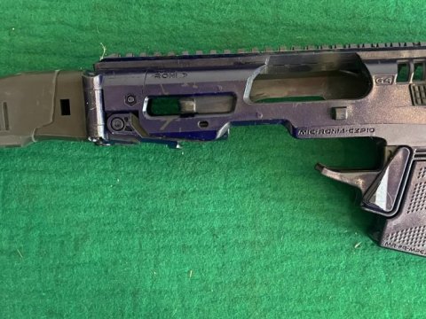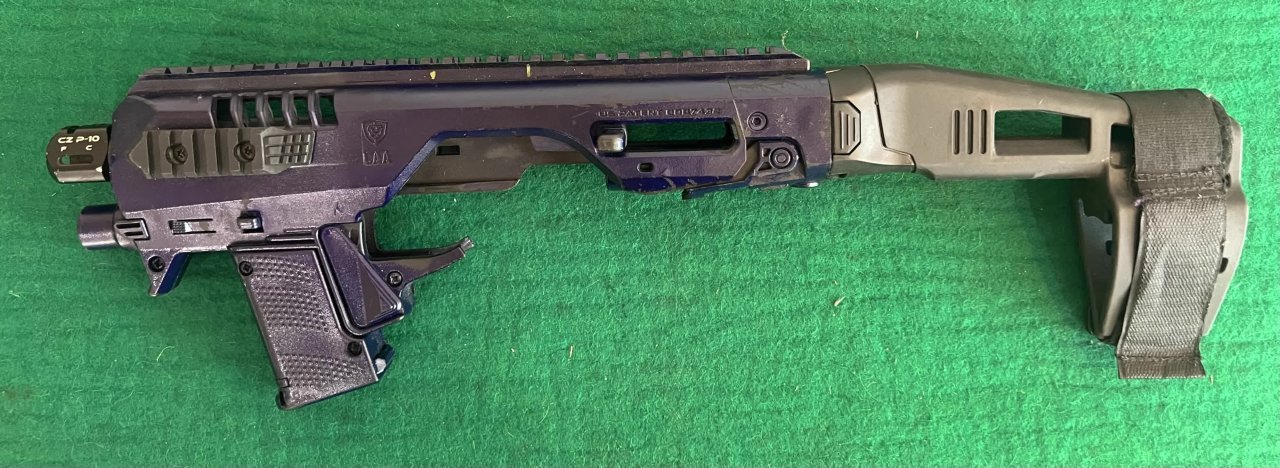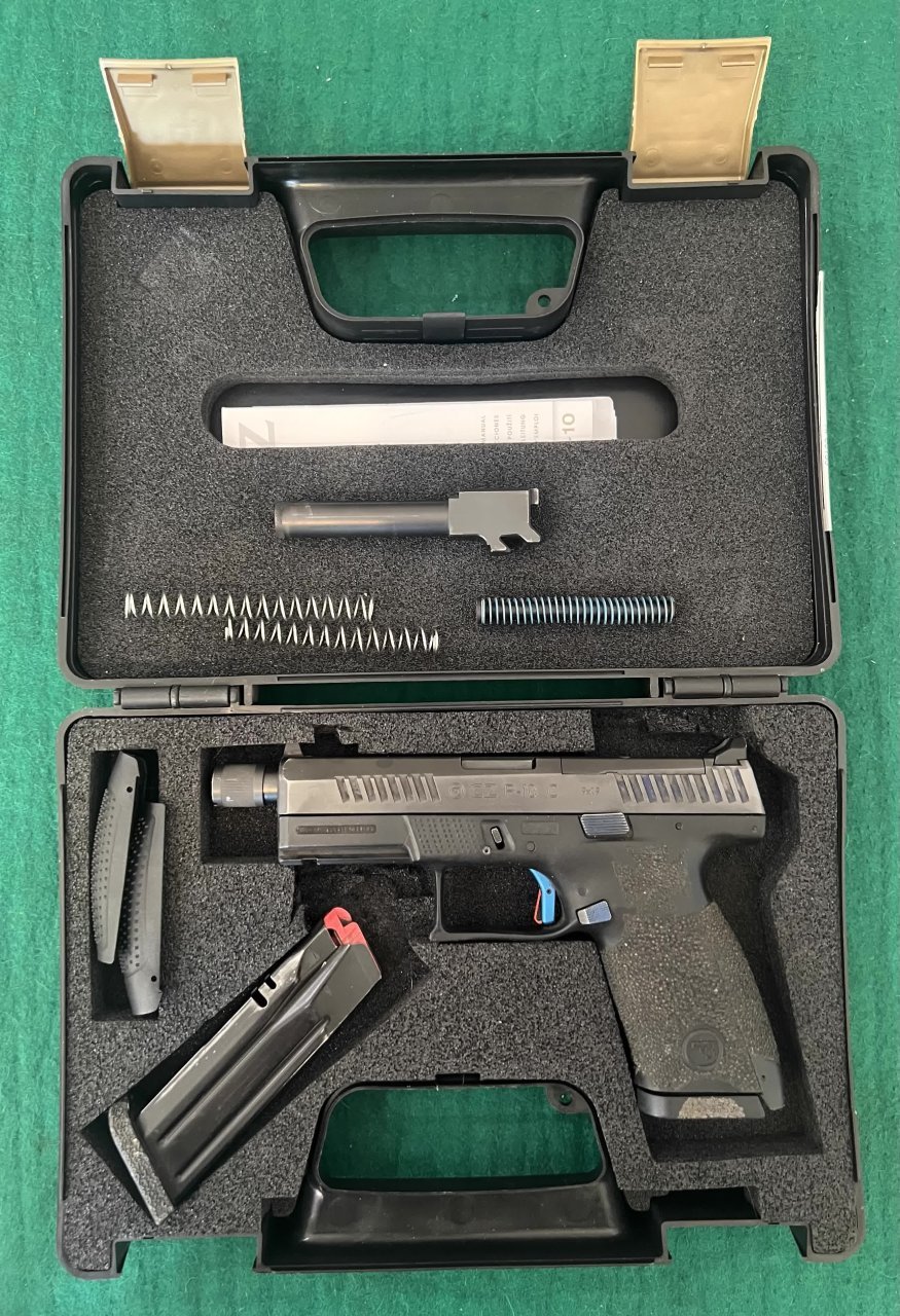 Pistole samonabíjecí ČZ P-10 C, v ráži 9 Luger. K pistoli je druhá hlaveň se závitem, kydexové pouzdro na pistoli a dva zásobníky dále 10 ks standartních zásobníků kapacita 15ran a dva prodloužené zásobníky Pro Mag 30ran. Dále je ke zbrani konverze na zbraň CAA Roni. Laděná vratná pružina závěru. Střelecká brašna. Cena bez konverze za komplet 14000,- | |