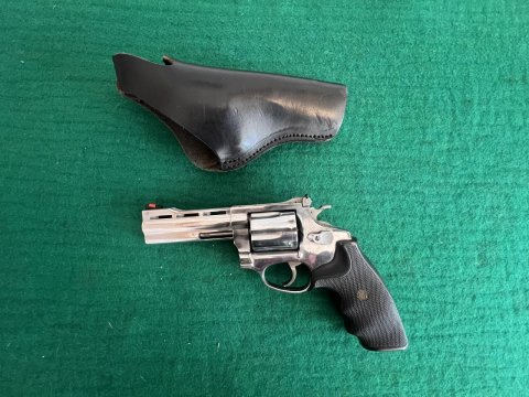 Revolver Rossi model 768 v ráži .38 Spec. Ulomený plátek hledí, kožené pouzdro. Výborný stav. | |